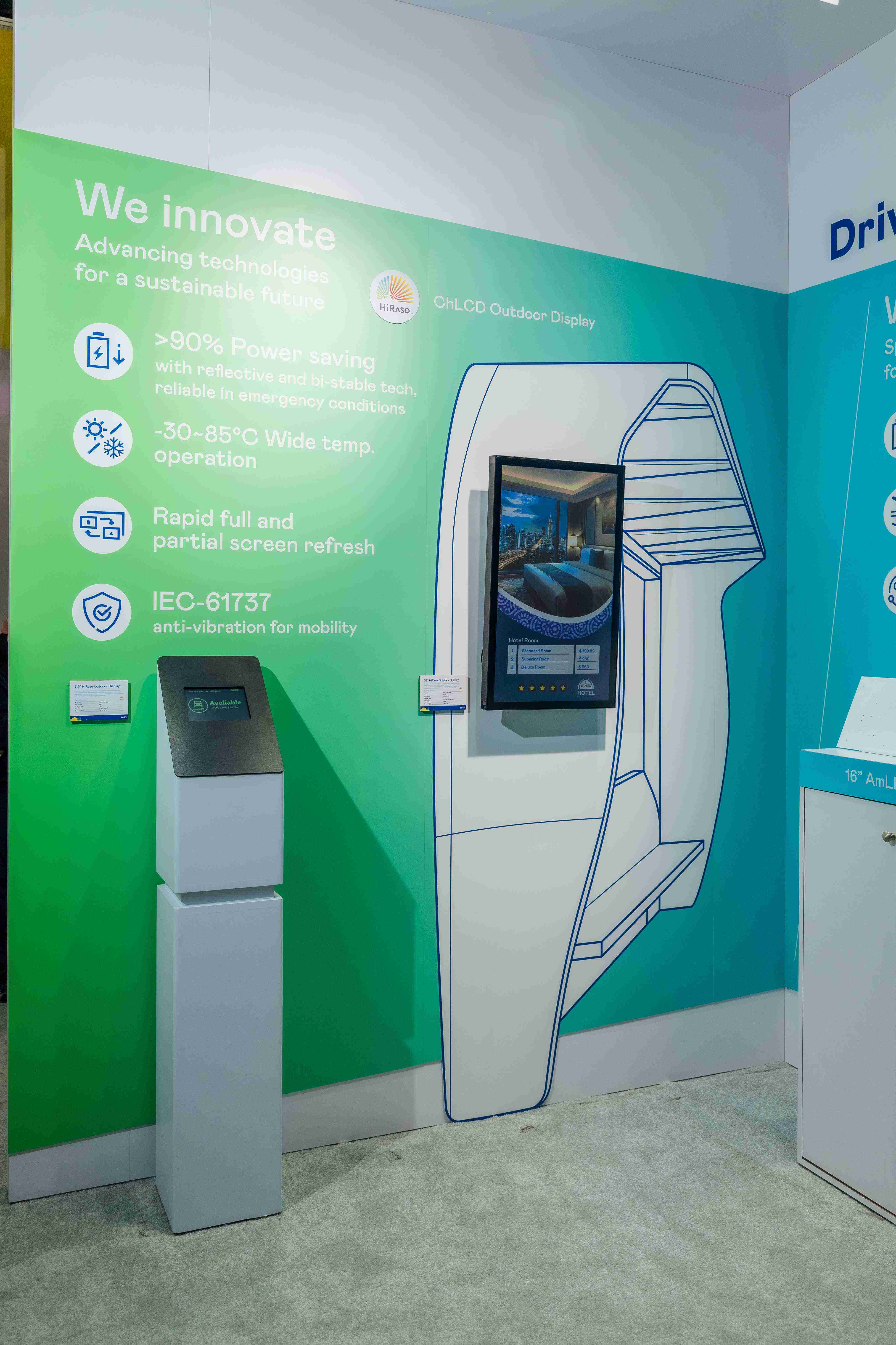 HiRaso胆固醇液晶显示器运用反射环境光线的方式,,呈现影像显示时零耗能的环保省电诉求,,,光线愈强愈能呈现绝佳的色彩饱和度及显示效果,,,,同时在摄氏-30度至85度间宽温的使用优势,,为户外电子看板的新首选。。。