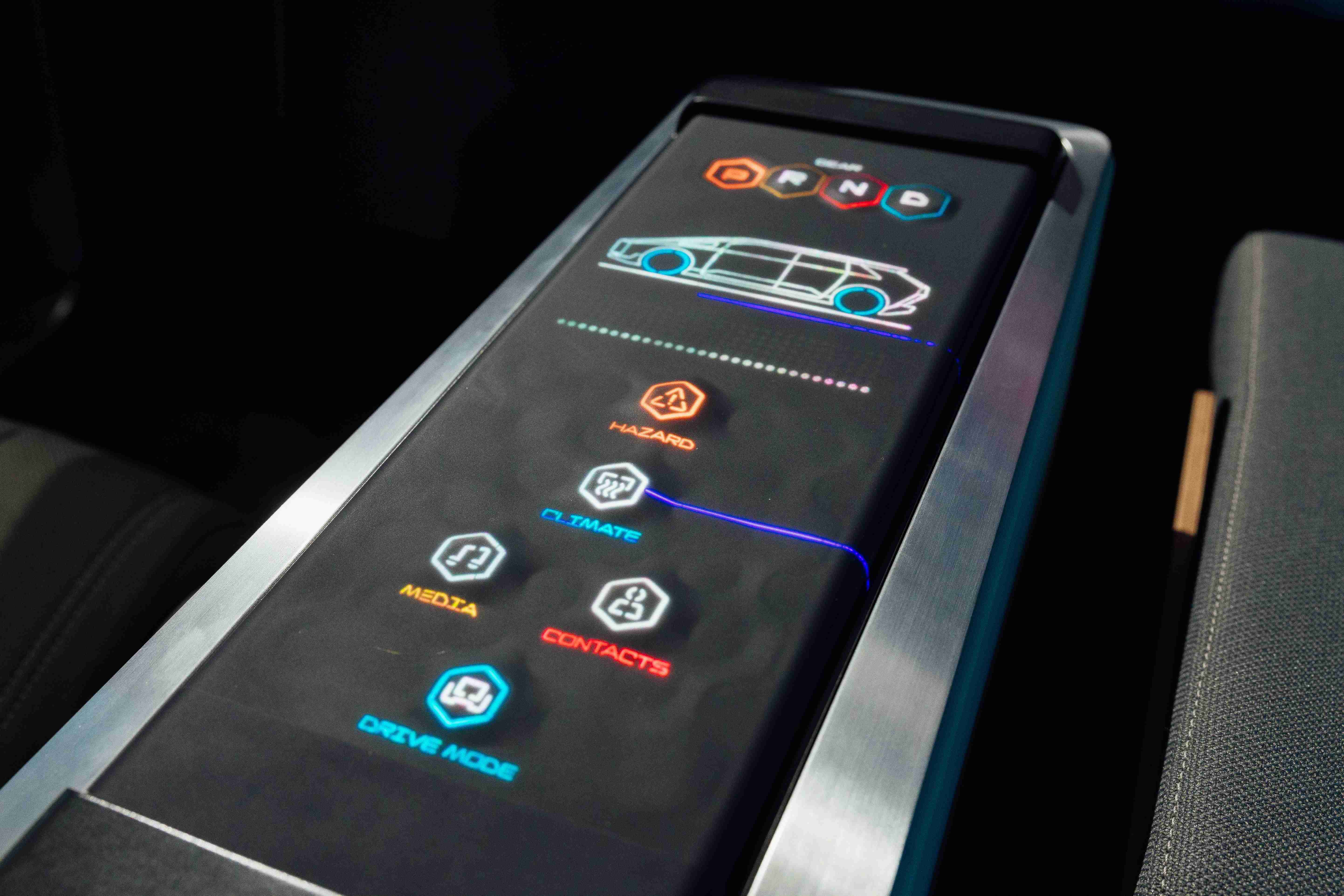 多变形态中控显示(Morphing Center Control)拥有动态变化的表面,,,,平时常态显示车辆功能,,,进一步操作时,,则会隆起成为3D 按钮,,,,并在触控时以震动回馈,,以精细的操作开创人机互动新境界。。。。 ![]()
