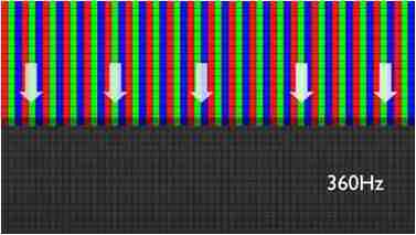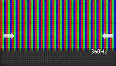 传统液晶驱动是从左到右单向进行,,,,在画面更新速度愈来越愈快的情况下,,,,位于驱动线路末端的右下角区域,,,,画素的闸极来不及在短时间内获得足够电压,,无法显示出正确的颜色资讯。。 |