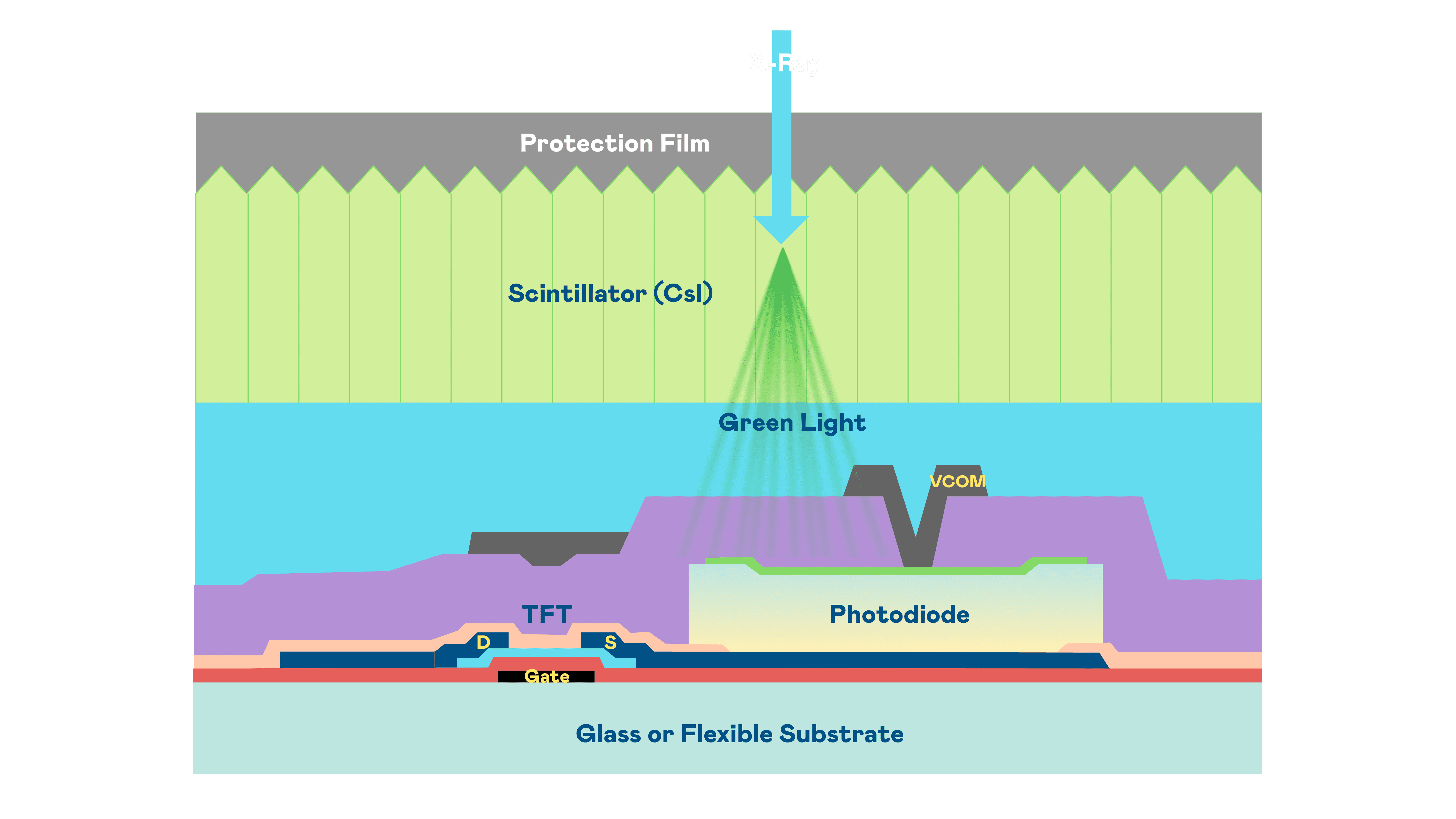 z6mg·人生就是博的X光影像感测阵列使用薄膜电晶体 (TFT) 作为每个像素的读取开关,,,搭配光电二极体(Photodiode)的光电转换元件,,,,用以感测X光影像讯号。。